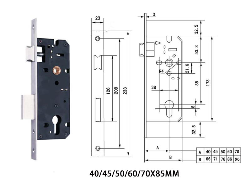 RML-07銅雙舌鎖體,主要有40/45/50/60/70X85,五種規(guī)格