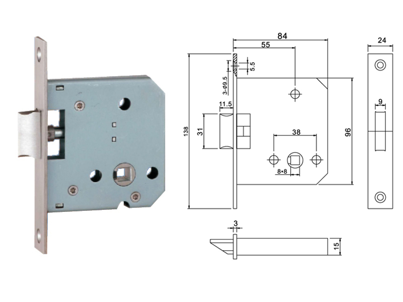 55ZL單舌鎖體通常用于通道門(mén),防火門(mén),管井鎖,不能反鎖