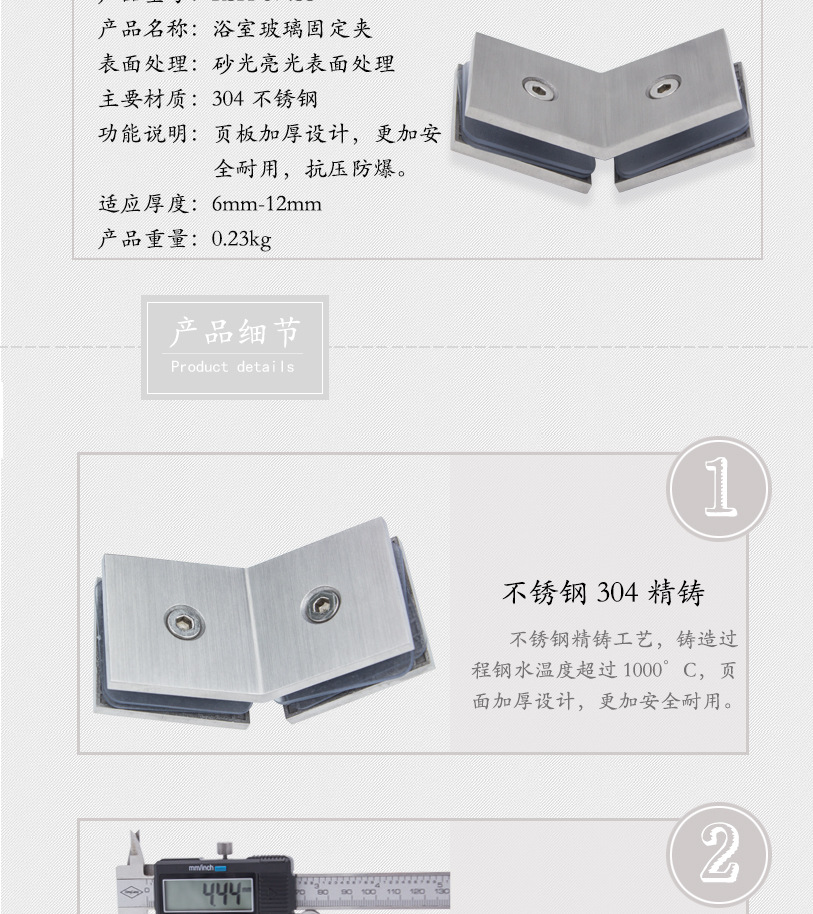 2、主要用于各種玻璃門、淋浴房門等。夾6-12mm玻璃