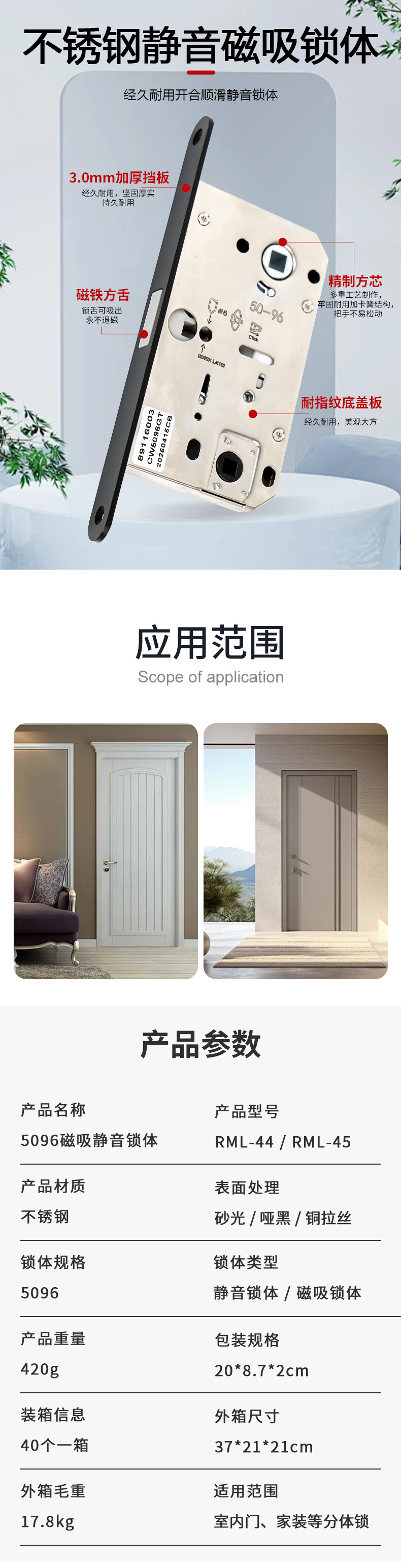 RML-44 RML-45 5096磁吸靜音鎖體