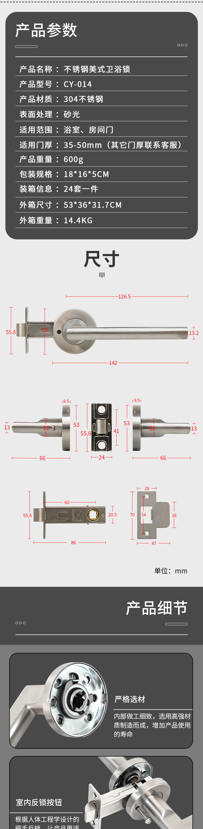 CY-014 不銹鋼304無鑰匙衛(wèi)浴隱私鎖