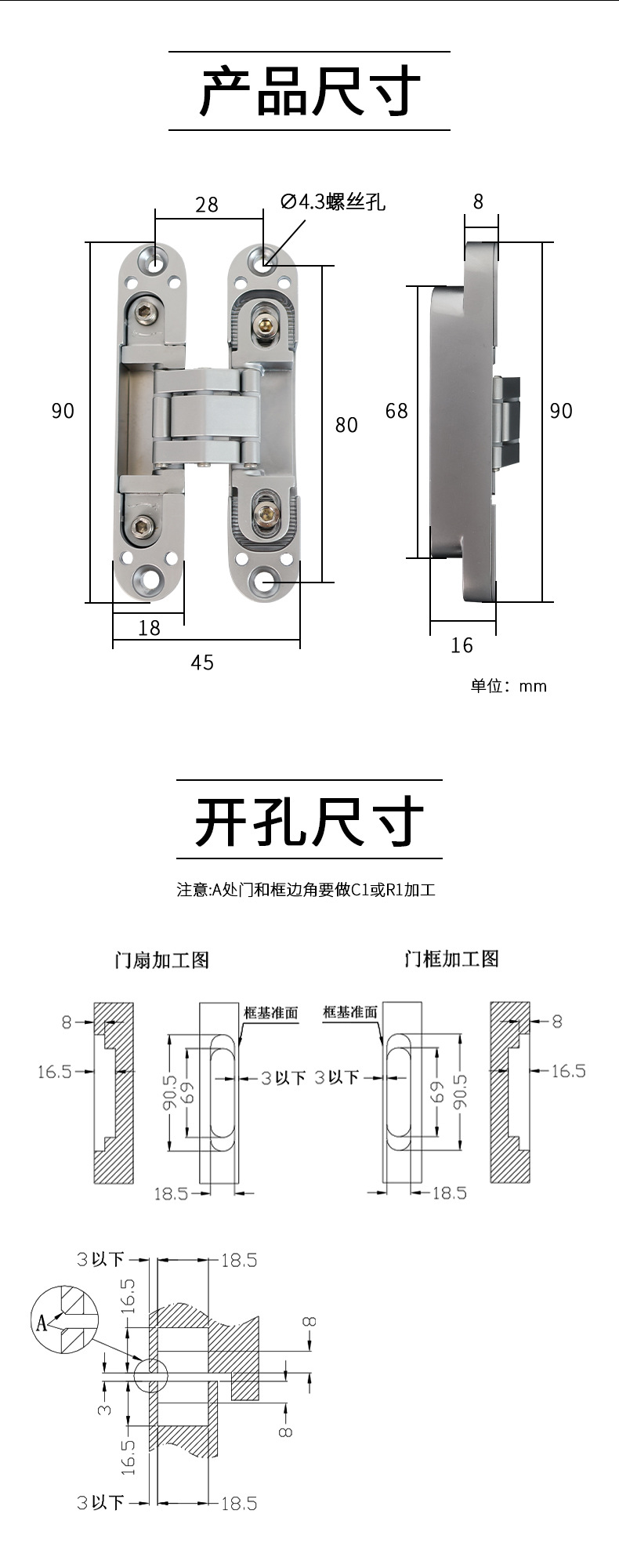 RCH-15A 輕型木門(mén)三維可調(diào)暗鉸