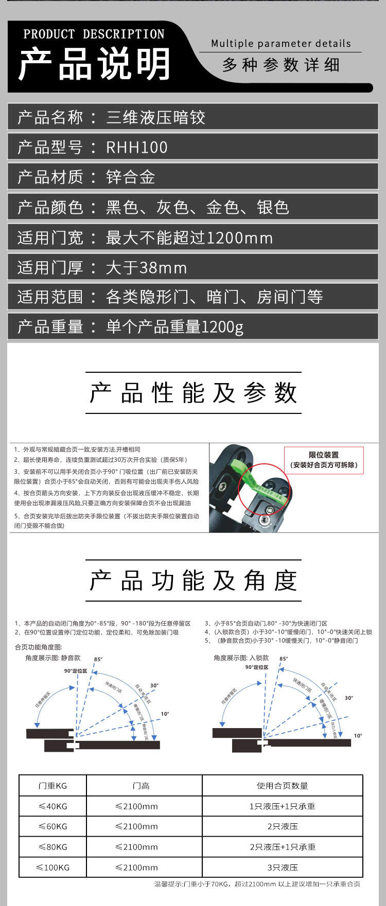 RHH-100 重型三維可調(diào)暗鉸承重100KG