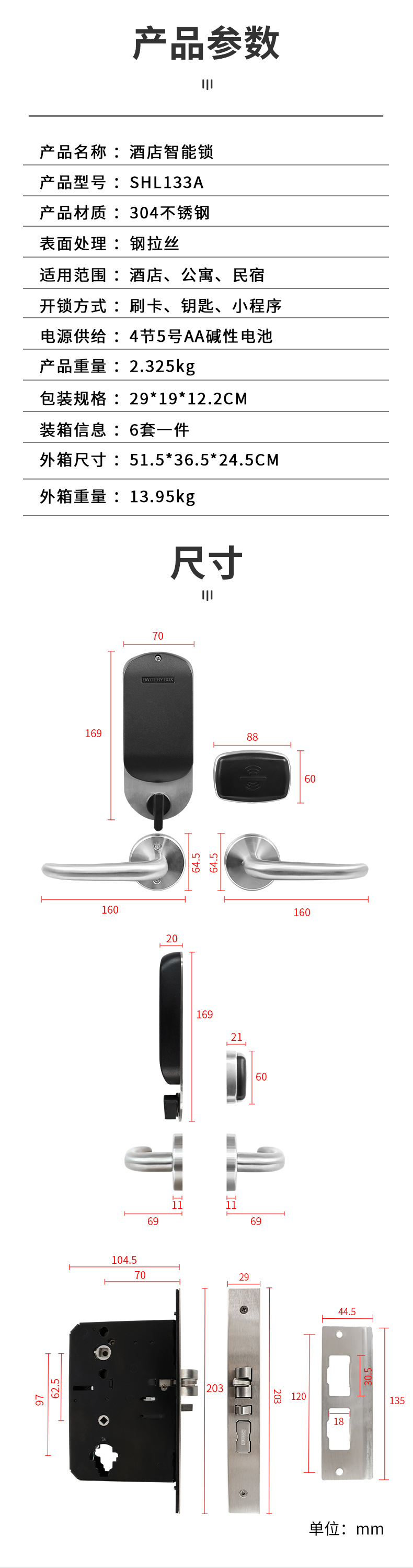 SHL-133A 不銹鋼304酒店分體式刷卡智能感應(yīng)鎖