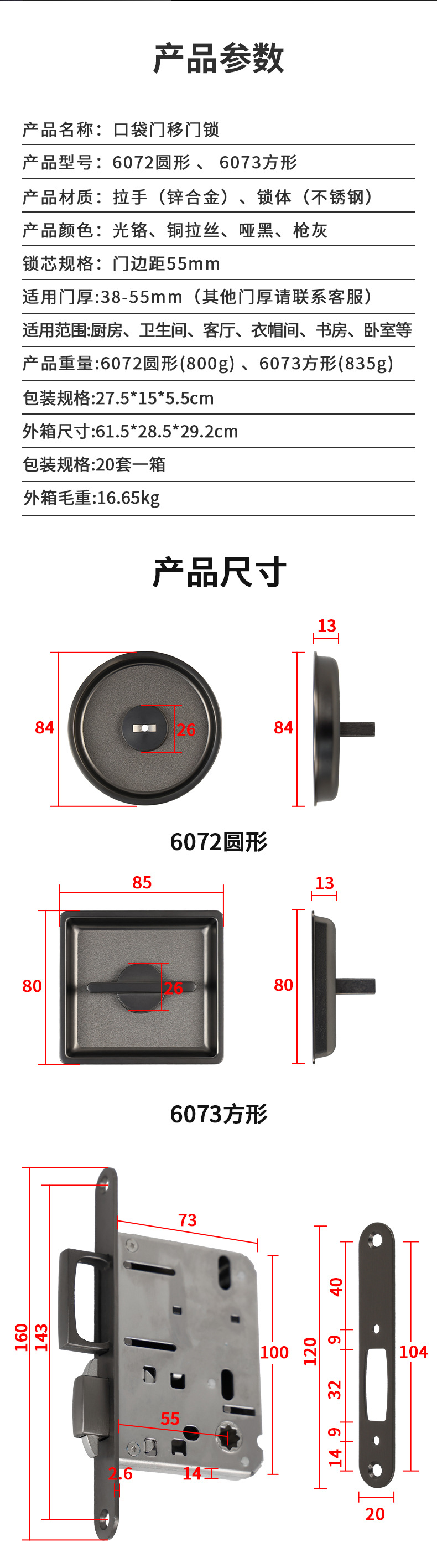 6072/6073 嵌入式隱形口袋移門鎖