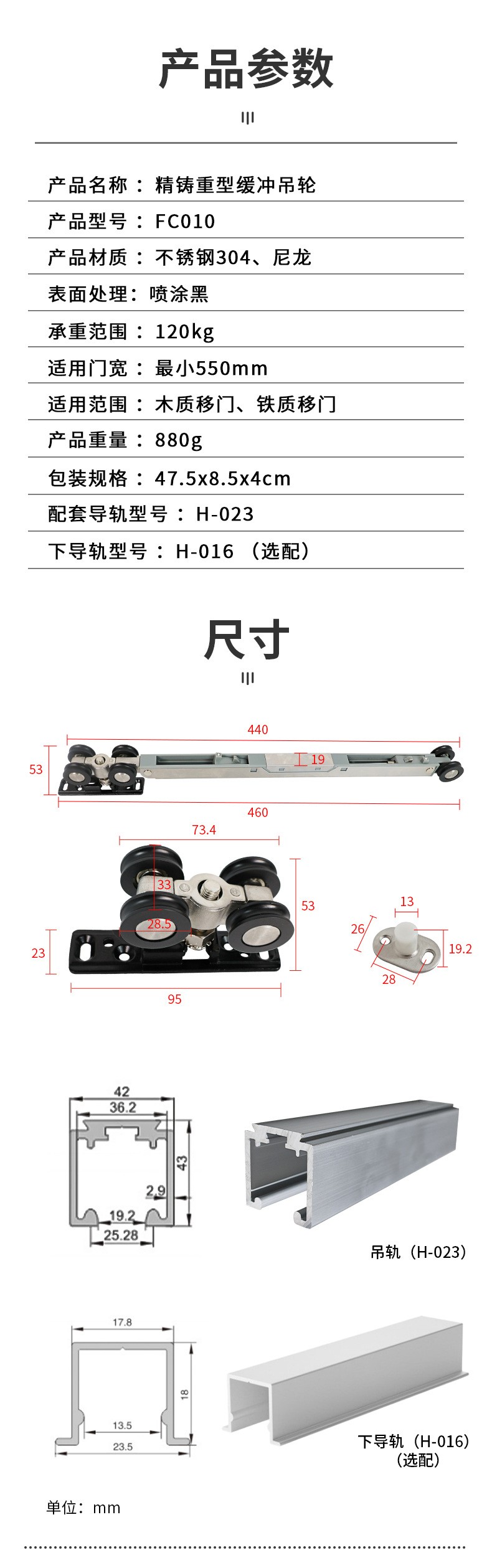 FC010 不銹鋼304重型120kg移門(mén)配套雙向緩沖吊輪吊軌