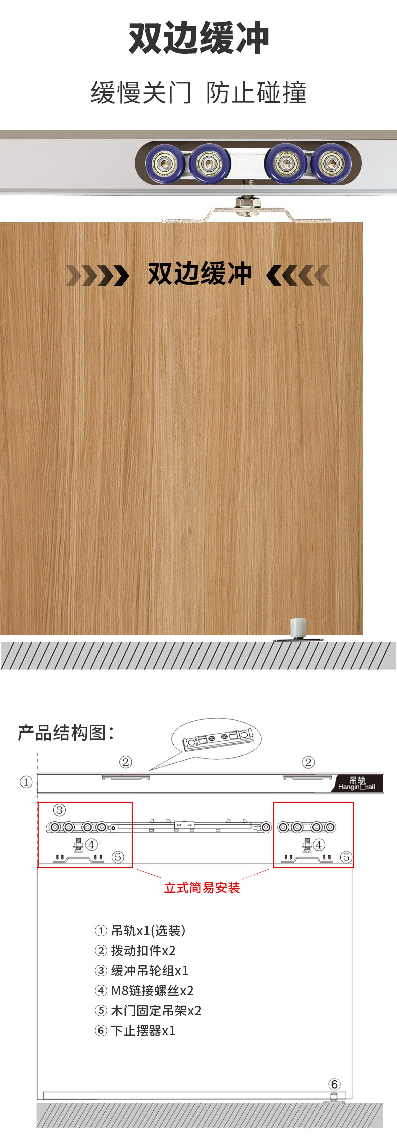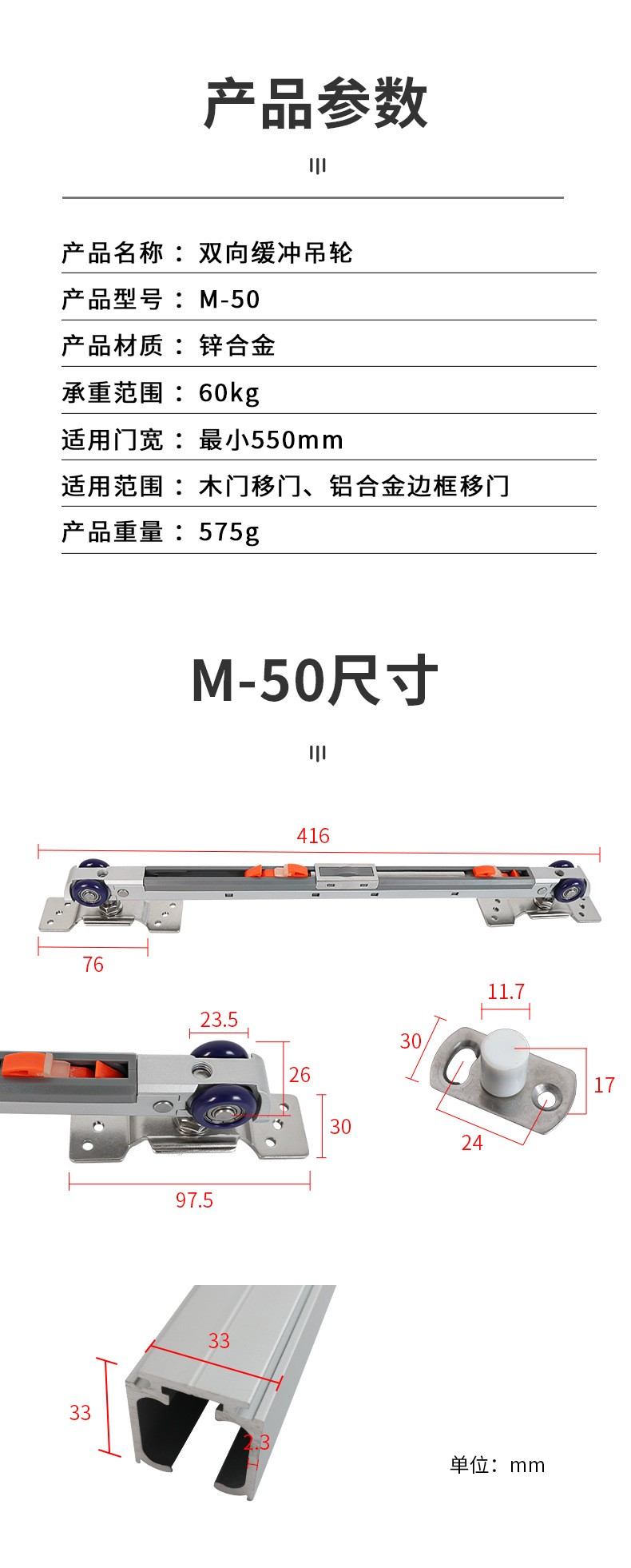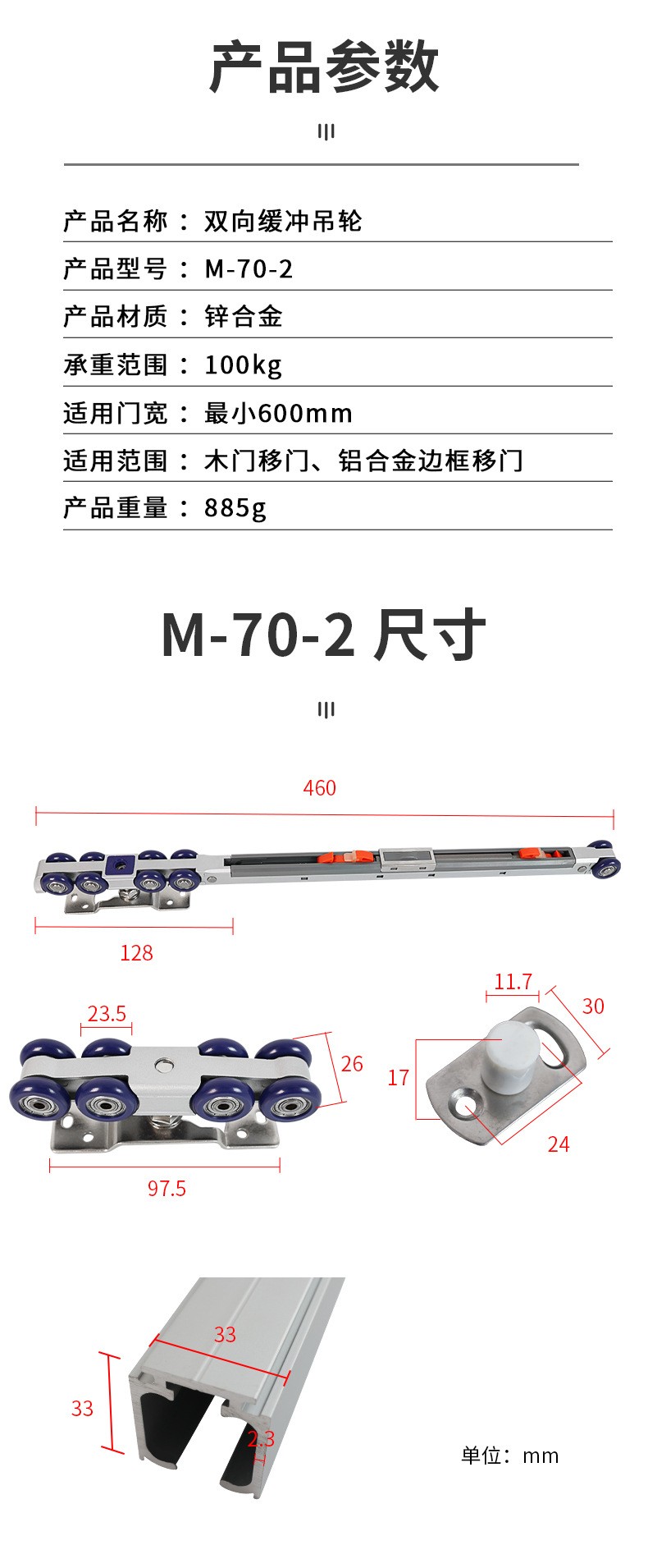 M50 M70-2 承重100kg木門吊輪阻尼液壓滑輪