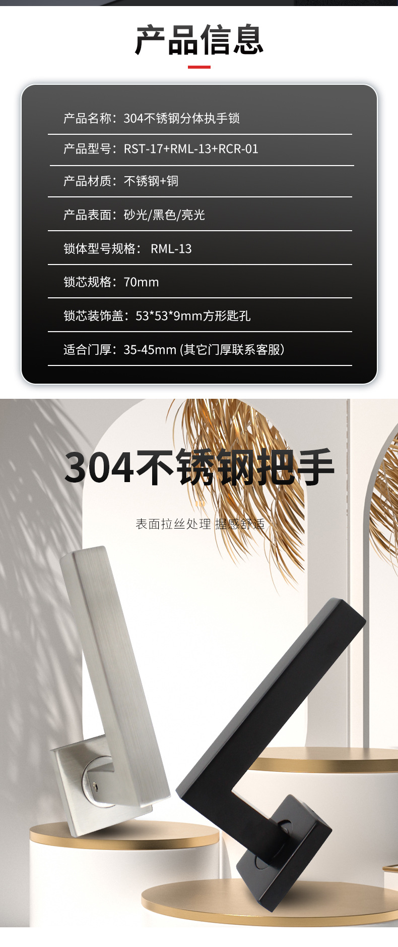 RST-17 歐標(biāo)不銹鋼304方形把手房門鎖