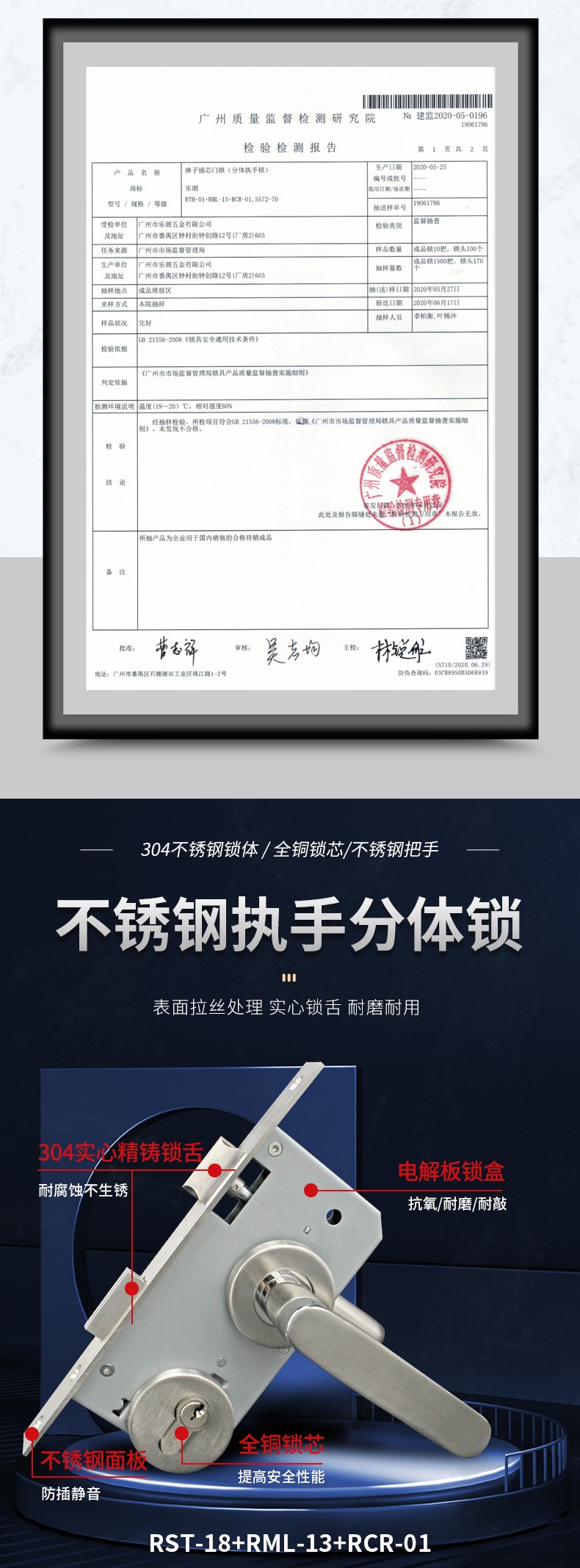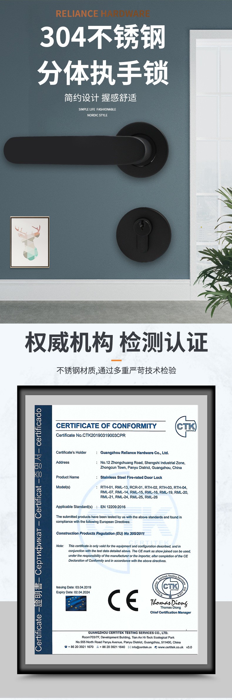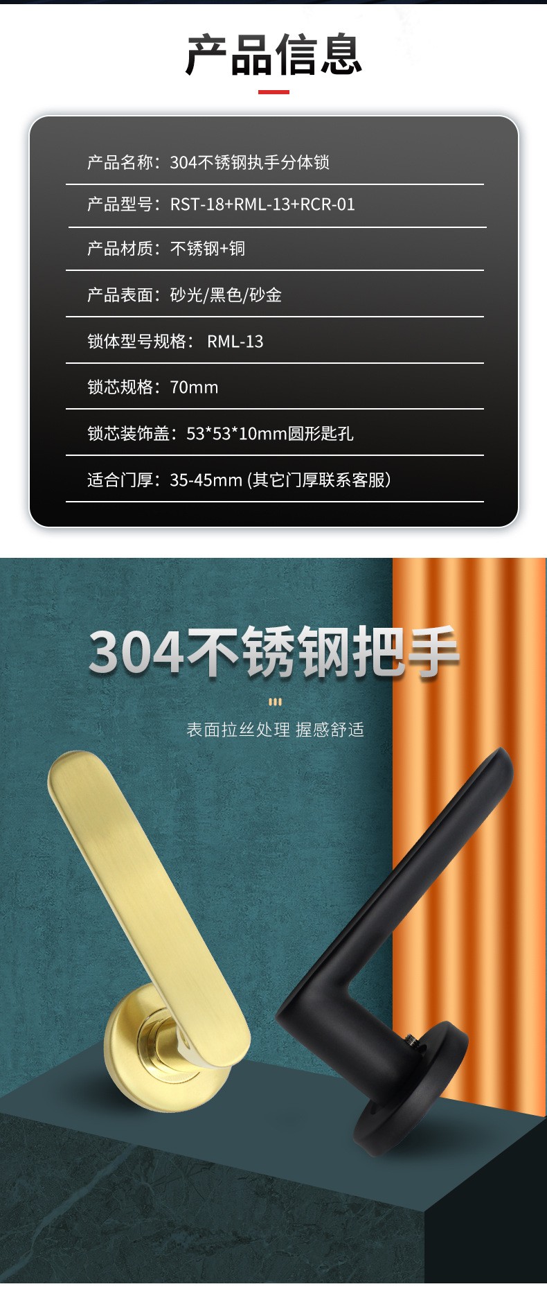 RST-18 不銹鋼304仿精鑄執(zhí)手分體機械門鎖