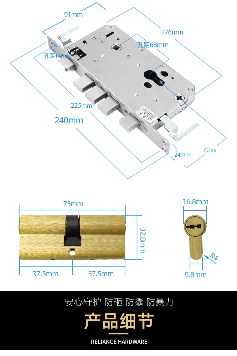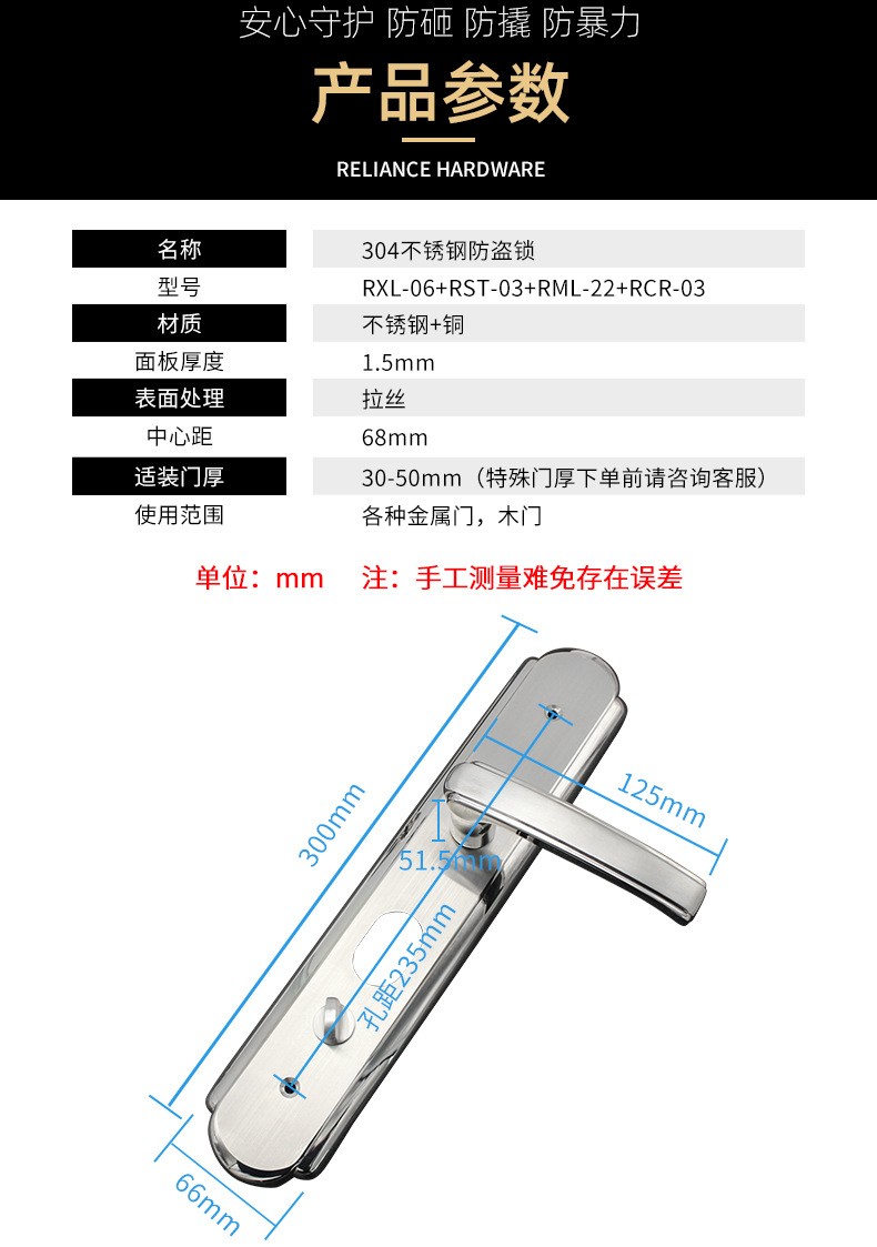 RXL-06-03 不銹鋼加厚面板大門鎖