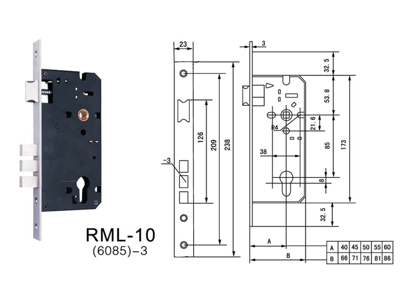 Classic Black Three Dead Bolt Guangzhou SUS201 Mortise Sliding Door Lock Body