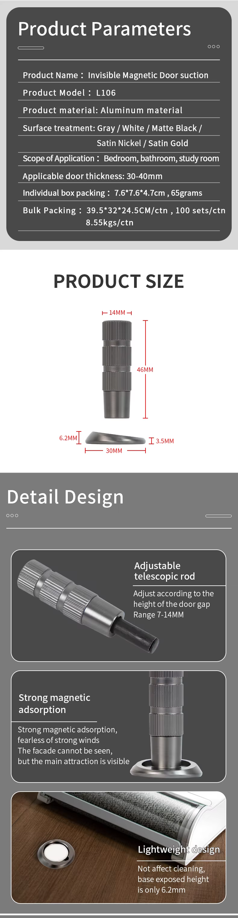 L106 High Grade Aluminium Ultrathin Concealed Door Stopper